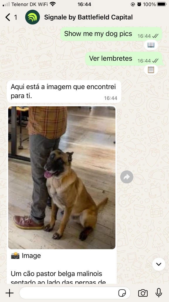 "Show me my dog pics" - Signale performs semantic search over the user's uploaded media database to retrieve contextually relevant images.